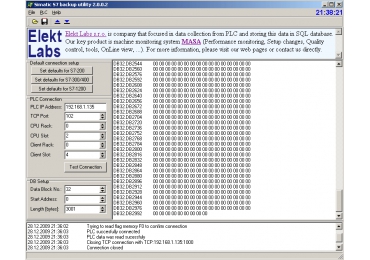 Application for collecting data from different kinds of PLC´s and datasources. Application enables storing data into MASA database or works via ISO on TPC/IP S7 server on an Ethernet network. Supported devices: Siemens SIMATIC S7-300, S7-400 Ethernet (ISO on TCP/IP), Indramat CLM, Siemens S5/AS511 Elekt Labs Measurement Acquisition Protocol (ELMAP), IBHLink (S7-300, S7-400) MS Access mdb files.